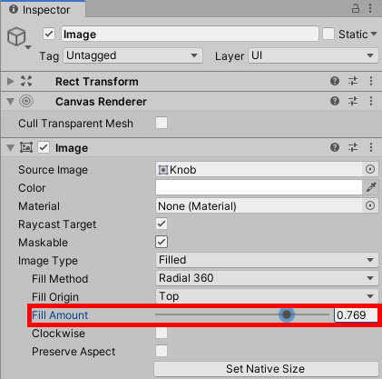 fill origin, fill amount, clockwise 속성에 아래와 같이 설정한다.