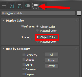 5)display 패널로 이동해서 display color의 shaded에서 object color를 선택한다.