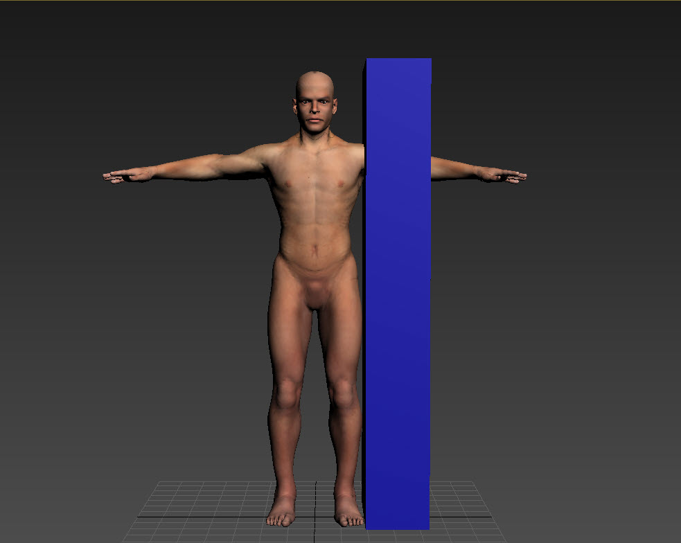 3)캐릭터 모델의 크기를 측정한다. 박스 오브젝트를 생성하여 모델의 크기가 적절한지 확인한다.