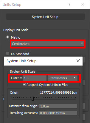 2)unit setup에서 유닛 스케일이 올바르게 설정되어있는지 확인한다.