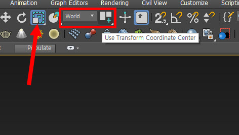 scale tool 우측에서 world를 선택(reference coordinate system)하고 use transform coordinate centor를 선택한다.