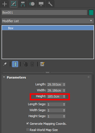 1)예에서 캐릭터 모델의 높이가 185cm인것을 확인할수있다.