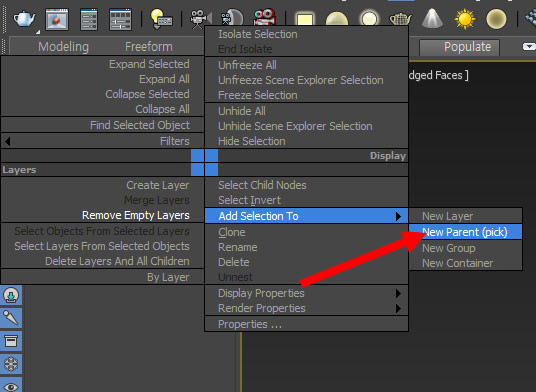 11)또는 해당 오브젝트를 선택하고 마우스 우클릭한후 add selectiopn to의 new parent(pick)을 선택한다.