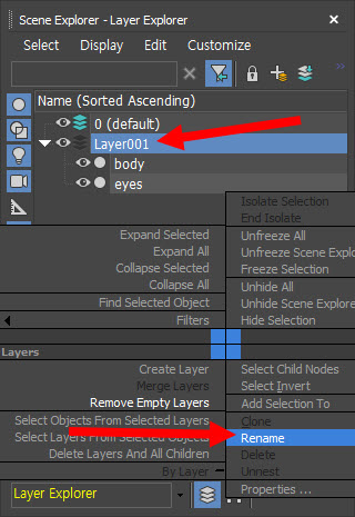 3D맥스에서 layer explorer를 사용하여 씬의 오브젝트 및 레이어 관리하기