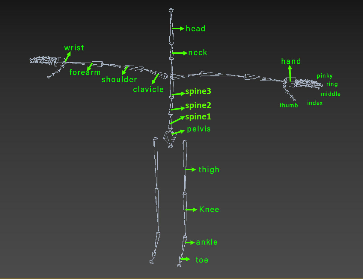 본 스켈리톤(bone skeleton)에서 본 오브젝트의 이름을 설정하기