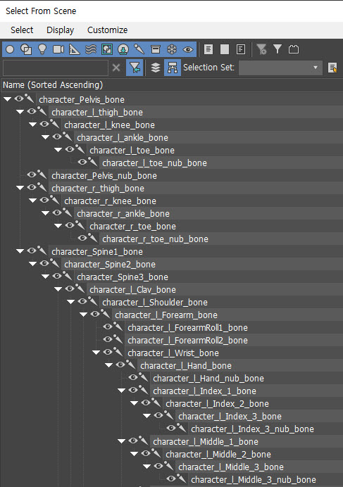 3D맥스에서 본(bone) 오브젝트 이름 설정