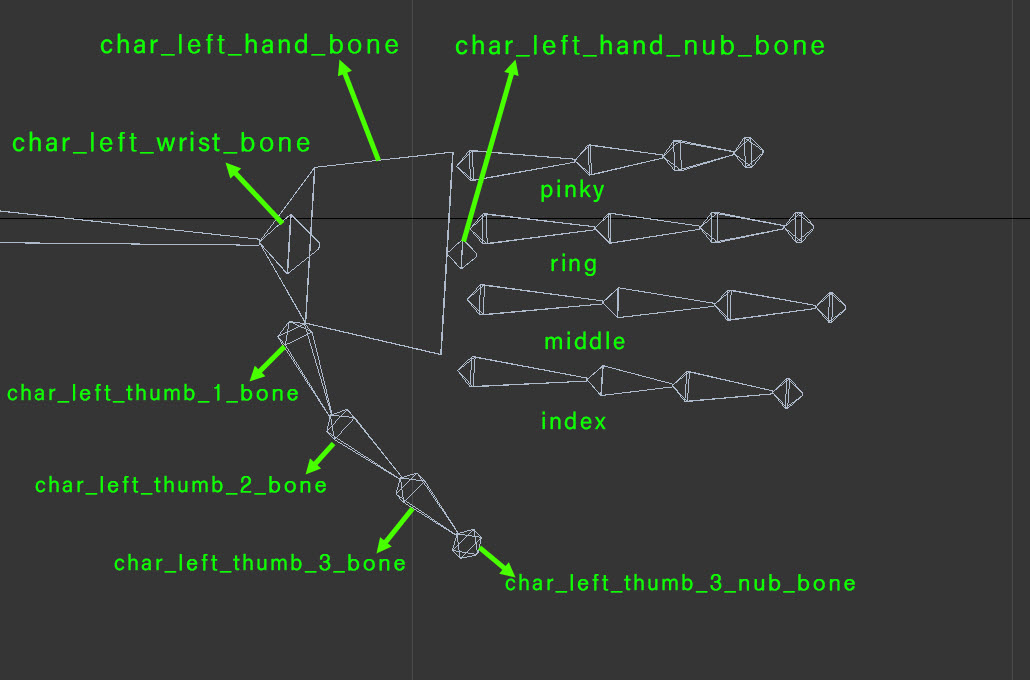 4)5개 손가락의 이름과(thumb, index, middle, ring, pinky) 손가락 마디에 대한 순번을 추가한(thumb_1, thumb_2, thumb_3)