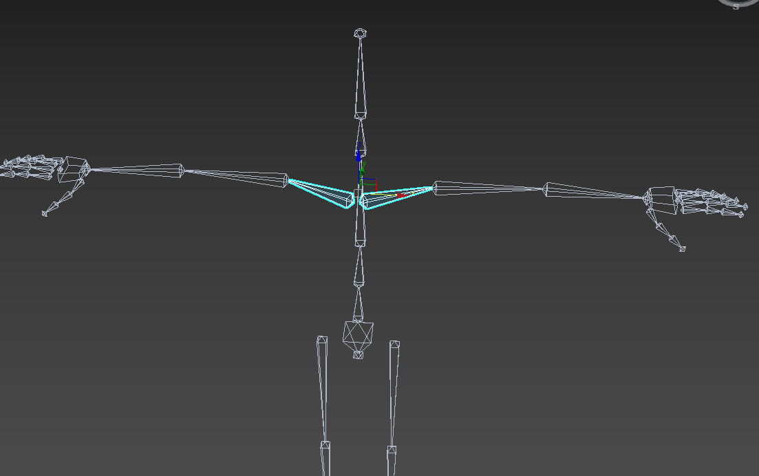 5)두 팔의 clavicle bone을 선택하고 neck bone의 상위 spine bone에 연결한다.