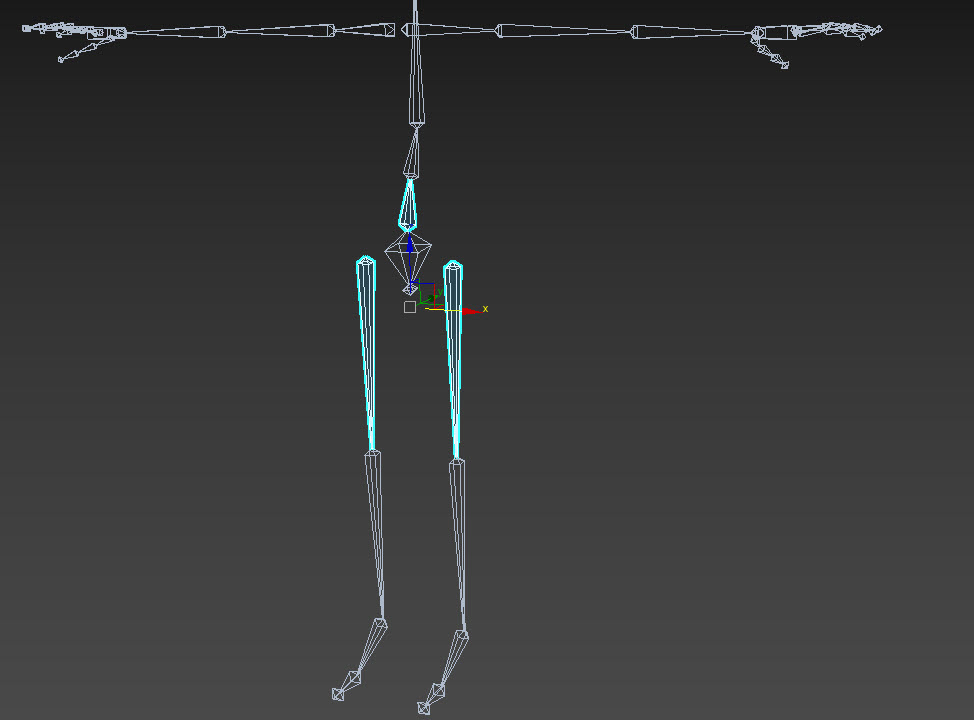 6)두 다리의 thigh bone과 spine bone를 선택하고 pelvis bone에 연결한다.
