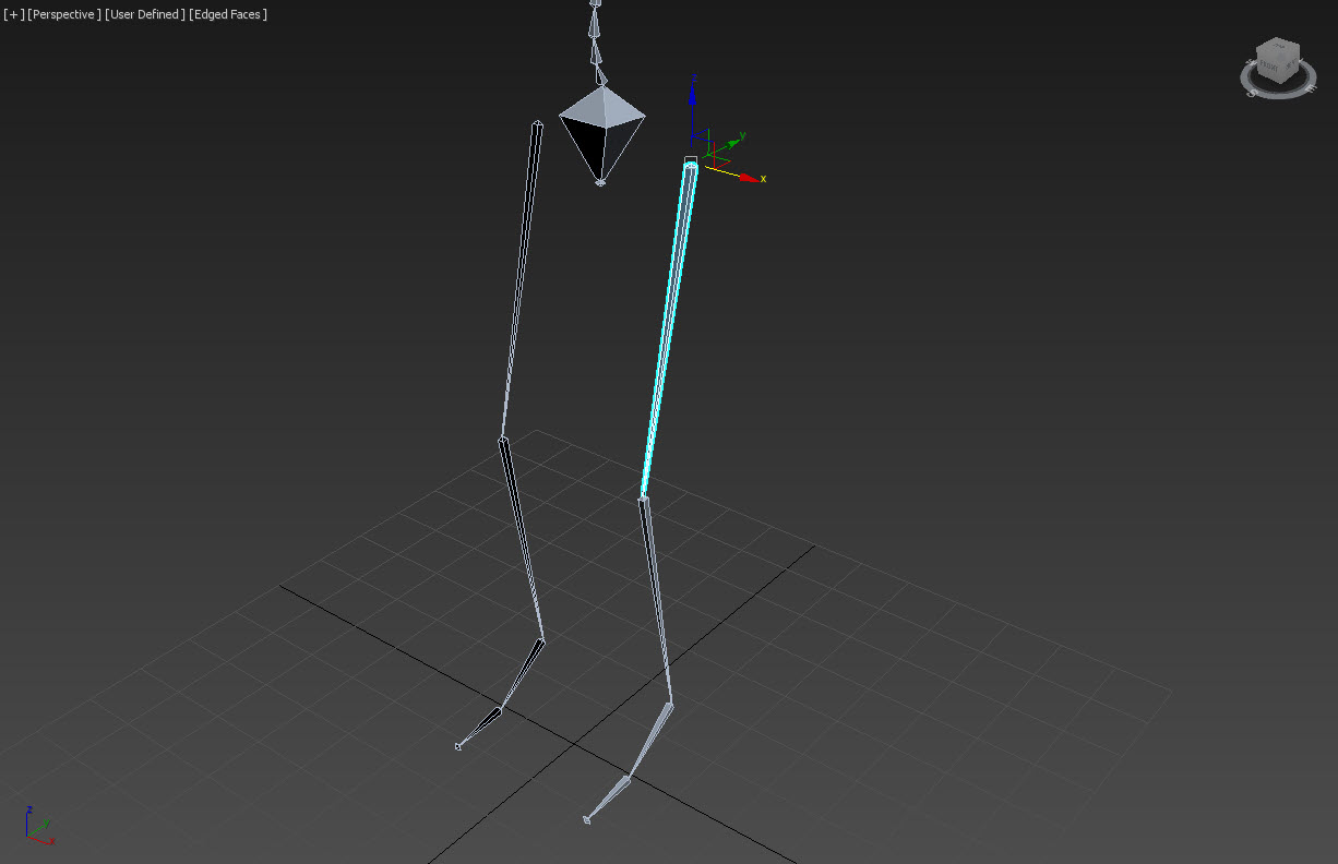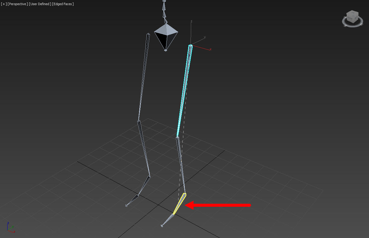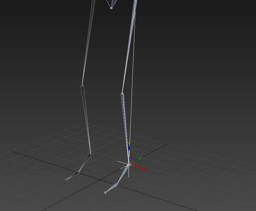 16)thigh bone이 회전하지않으며 IK solver와 링크가 정상적으로 설정된것을 확인할수있다.