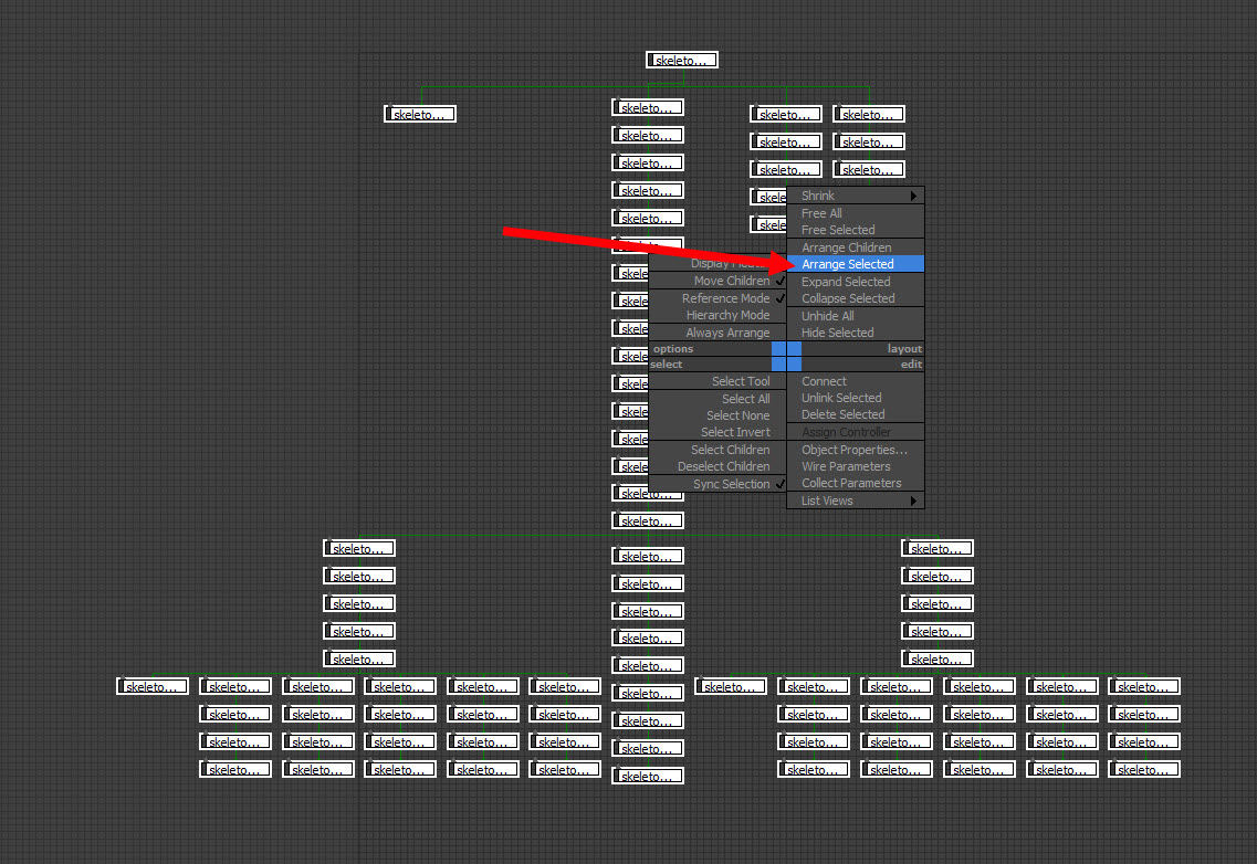 7)모든 노드를 선택하고 마우스 우클릭한후 메뉴에서 arrange selected를 선택한다.
