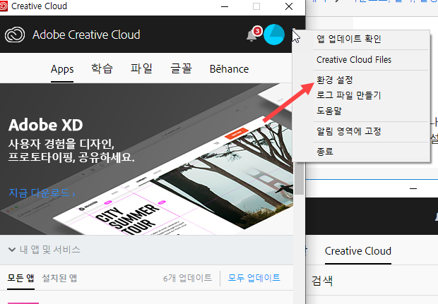 creative cloud앱을 이용한 방법