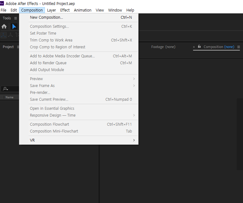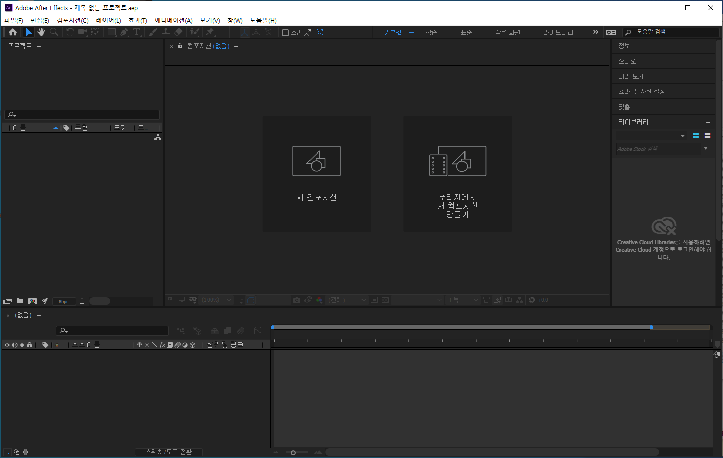 10)에프터 이펙트를 재실행하면 사용자 언어가 변경된것을 확인할수있습니다.