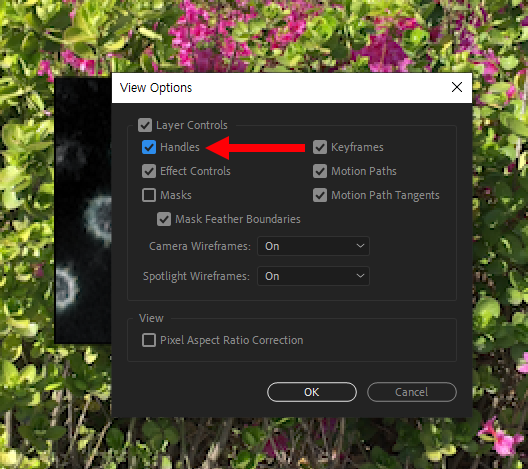 에펙에서 선택한 오브젝트의 앵커 포인트(anchor point)와 바운딩 박스(bounding box)가 표시되지않는 경우