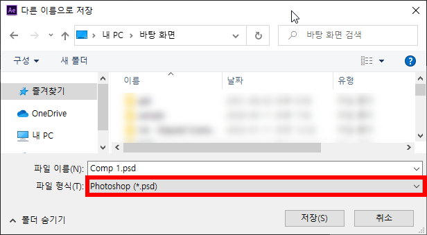 에프터이펙트(after effect)에서 현재 프레임을 포토샵 레이어로 저장하기(psd파일)