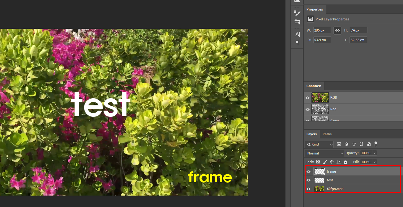 5)포토샵에서 psd파일을 열기합니다. 에프터이펙트에서 저장한 프레임의 이미지 레이어를 확인할수있습니다.