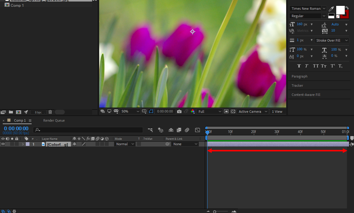 에프터이펙트(after effect)에서 컴포지션에 추가하는 푸티지의 길이 설정하기