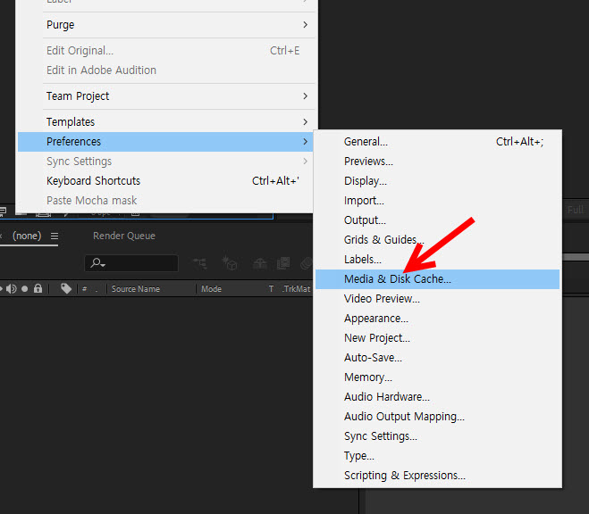 에프터이펙트(after effect)에서 디스크 캐시 삭제하기