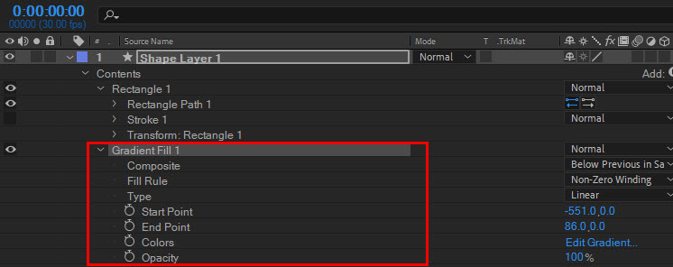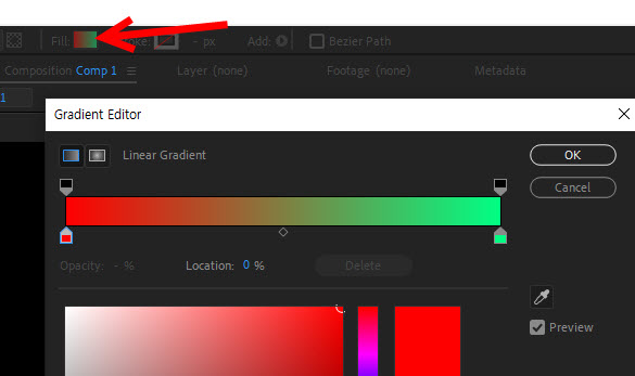 에프터이펙트(after effects)에서 shape 레이어에 그라디언트 색상 추가하기(gradient fill)