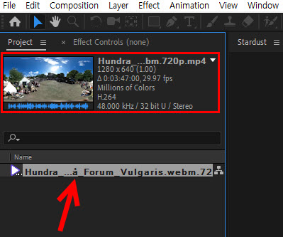 1)프로젝트 패널에서 동영상을 선택하면 미리보기와 동영상 정보를 표시합니다.