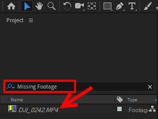 2)이것은 프로젝트 패널에서도 확인할수있습니다. 프로젝트 패널의 아래 표시한 검색란에서 missing 이라고 입력합니다.