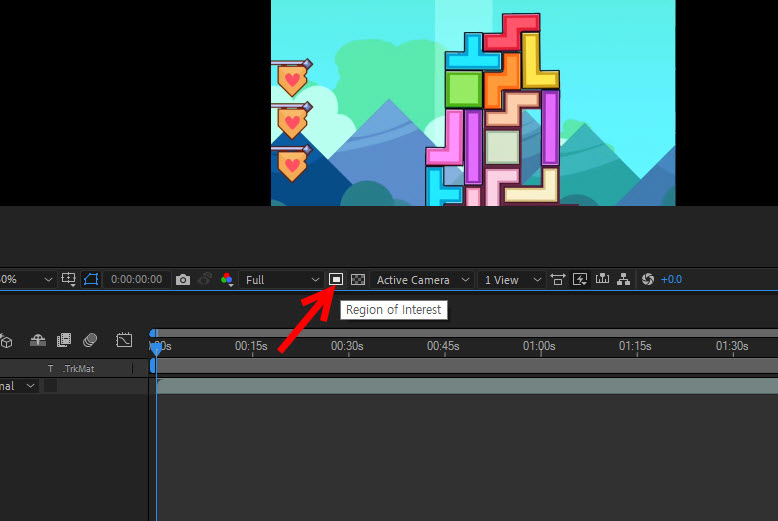 2)컴포지션 패널의 하단에서 region of interest 아이콘을 활성화합니다.