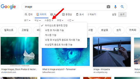 구글 이미지 검색에서 라이센스 필터링하기 1)구글 이미지 검색에서 설정을 클릭하고 고급검색으로 이동한다. 2)여기에서 이미지 검색의 기준을 설정할수있다. 3)하단에 위치한 사용권한에서 라이센스 필터링을 선택할수있다. 4)또는 이미지 검색에서 도구를 클릭하고 5)이미지 탭 하단의 사용권에서 라이센스 필터링을 선택할수있다. https://support.google.com/websearch/answer/29508?hl=ko