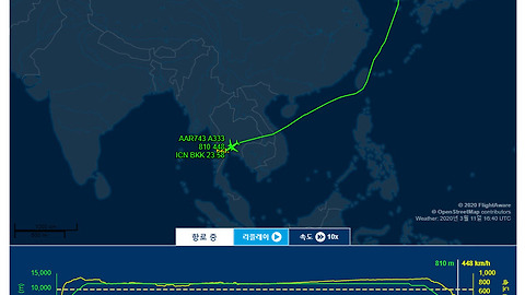 실시간 항공기 위치를 제공하는 웹사이트(항공편 위치 추적)1)아래 웹사이트에서 항공기의 실시간 위치를 제공한다.https://ko.flightaware.com/ 2)항공사와 항공기명을 입력하고 추적을 클릭한다. 3)해당 항공기의 비행 스케줄을 알수있고 지도에서 현재 위치를 확인할수있다.
