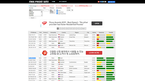 프록시 서버를 이용하여 아이피 주소 변경하기 http://www.freeproxylists.net/1)위 홈페이지에서 무료로 이용 가능한 프록시 서버의 목록을 확인할수있다. 2)예를들어 아래 표시한 서버를 이용하려면 해당 서버의 IP주소와 port(포트) 번호를 복사한다. 3)제어판에서 네트워크 및 인터넷으로 이동한다. 4)인터넷 옵션으로 이동한다. 5)연결 탭의 LAN 설정으로 이동한다. 6)프록시 서버 사용에 체크하고 복사한 주소와 포트를 입력한다. 7)이후 내 아이피 주소를 검색해보면 프록시 서버의 아이피주소와 동일한것을 확인할수있다.