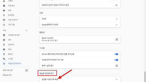 크롬 브라우저에서 페이지 여백 클릭시 새탭에서 광고 페이지 팝업되는 문제(아래 방법으로 해결)1)브라우저의 설정으로 이동한다.2)고급 메뉴에서 재설정 및 정리하기의 설정을 기본값으로 복원을 클릭한다.3)설정을 초기화한다.브라우저 주소창에 아래 주소입력해서 바로 이동가능chrome://settings/resetchrome://settings/cleanup