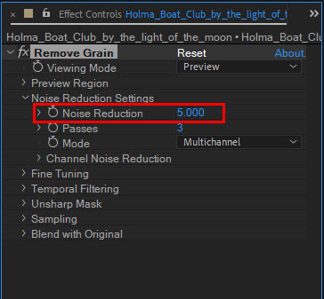 2)이미지 또는 동영상에 remove grain 이펙트를 추가합니다.