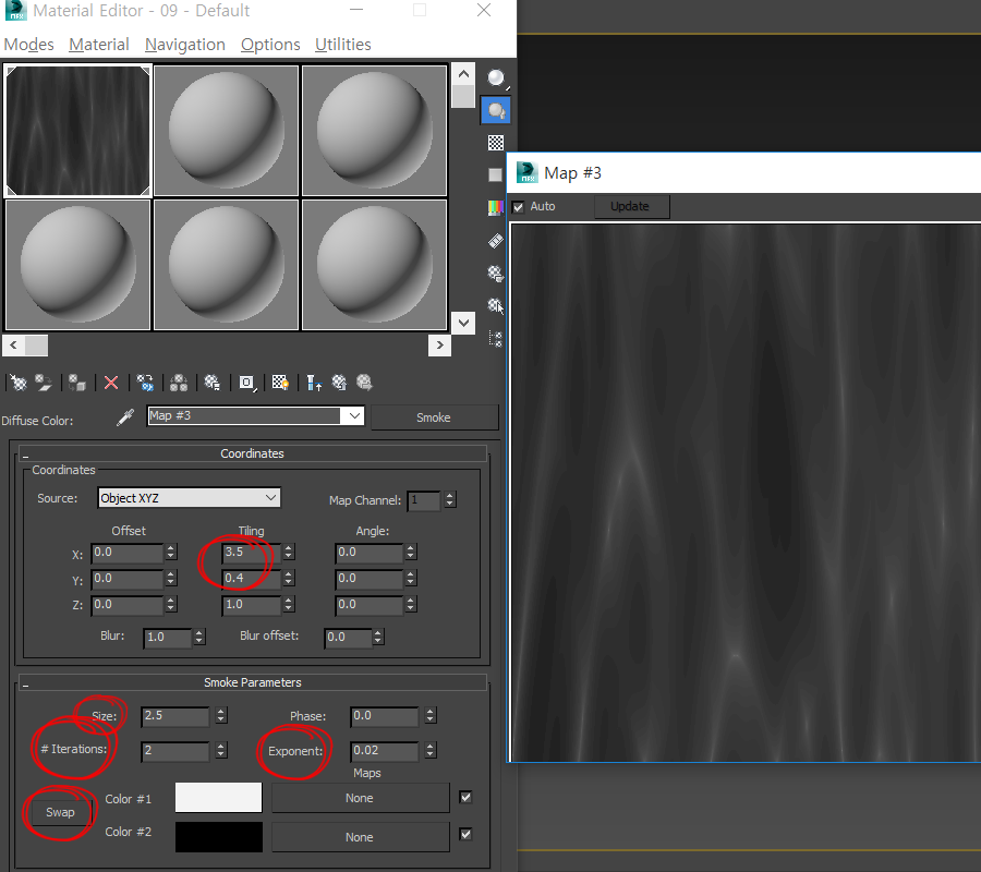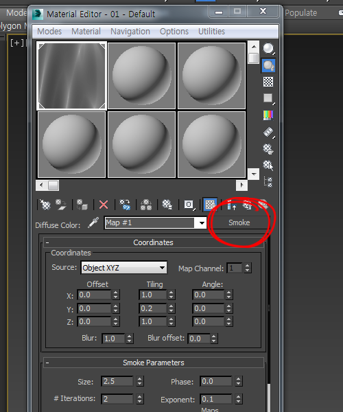 2)재질 편집기에서 smoke 맵을 생성합니다.
