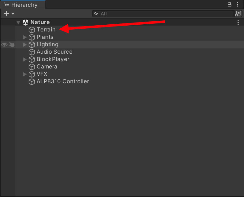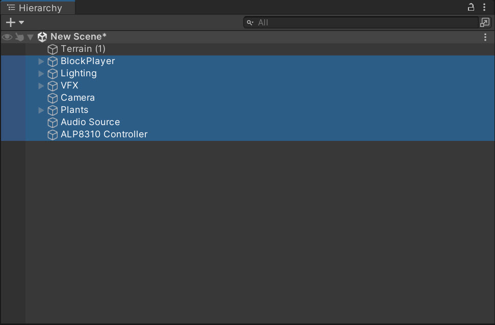 17)기존의 터레인 씬을 구성하는 오브젝트를 새로운 터레인 씬에 추가합니다.